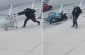 Video capta el momento en que un hombre lanza un carrito de compras a un ciclista